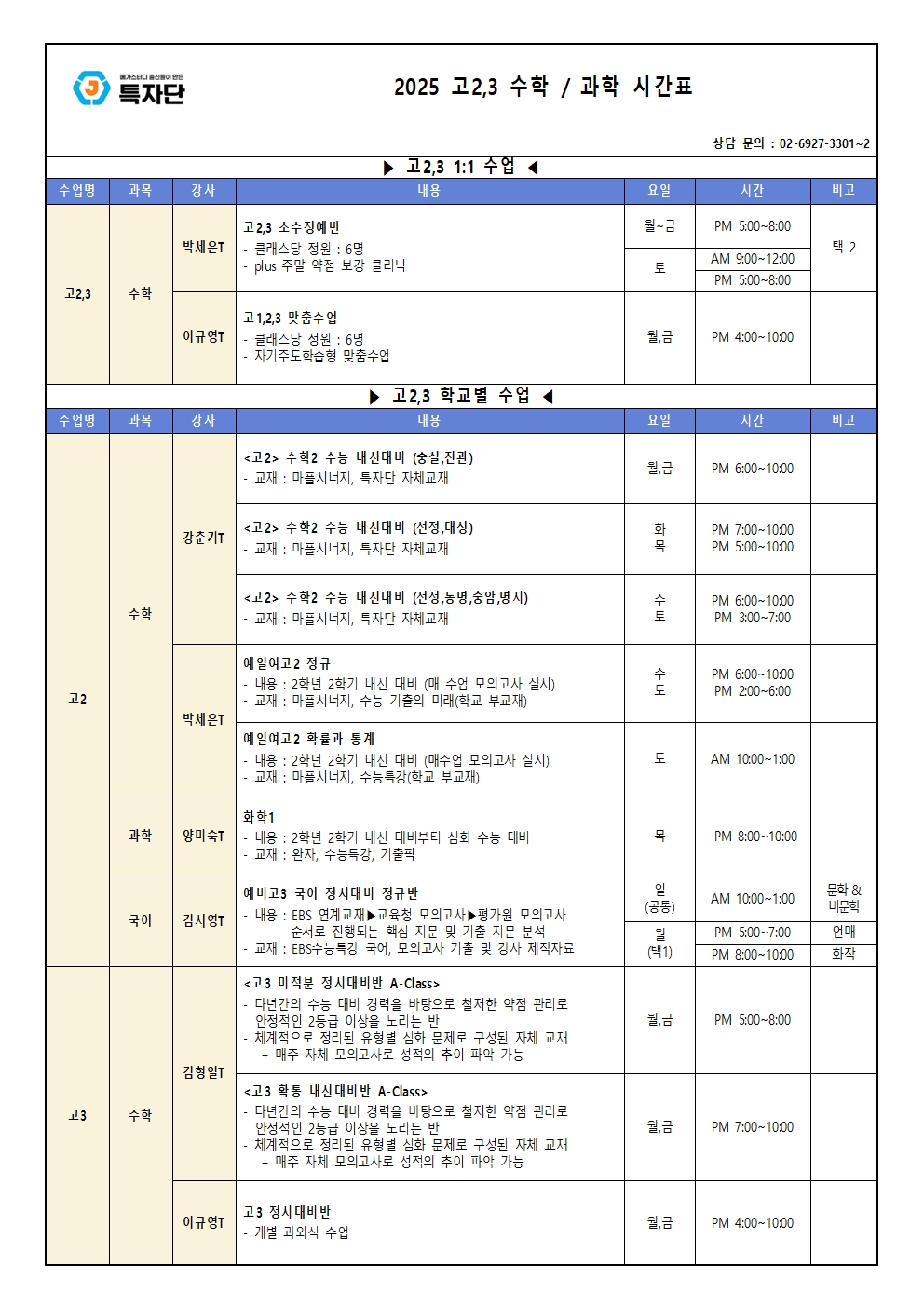 중3 - 예비 고1 시간표 (1차 7/19, 2차 11/10)