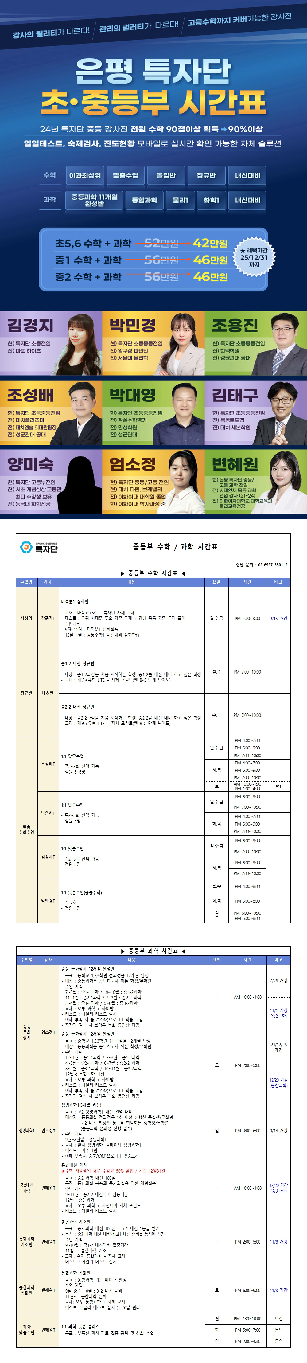 [숨긴게시글] 예비 고1 - 수학 과학 시간표 (11월 2차 개강)