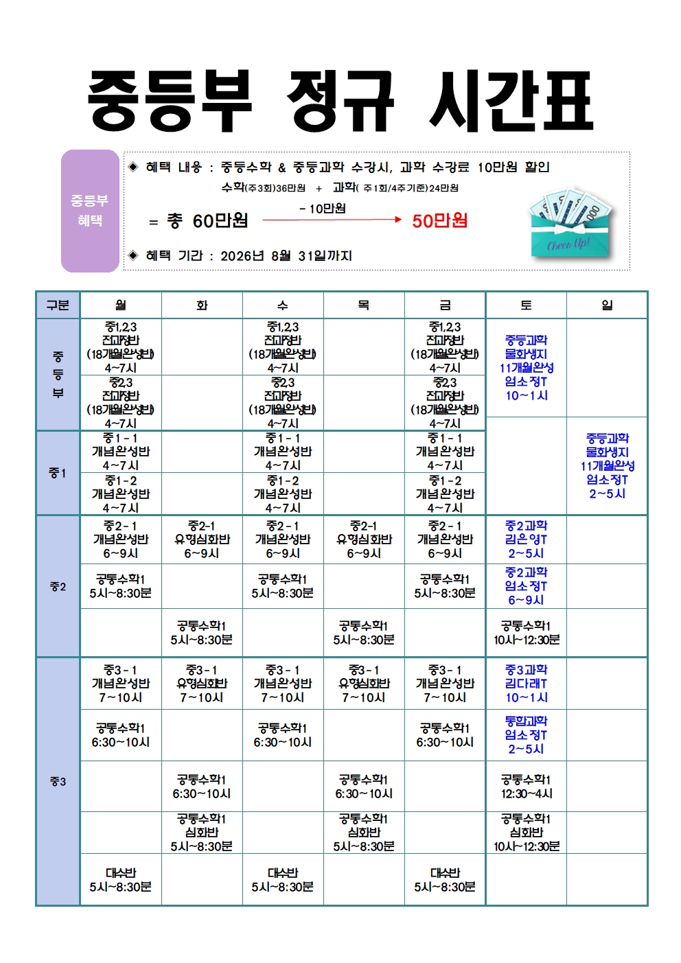 | [숨긴게시글] 중등부 - 수학/과학/국어 시간표 (겨울방학) |